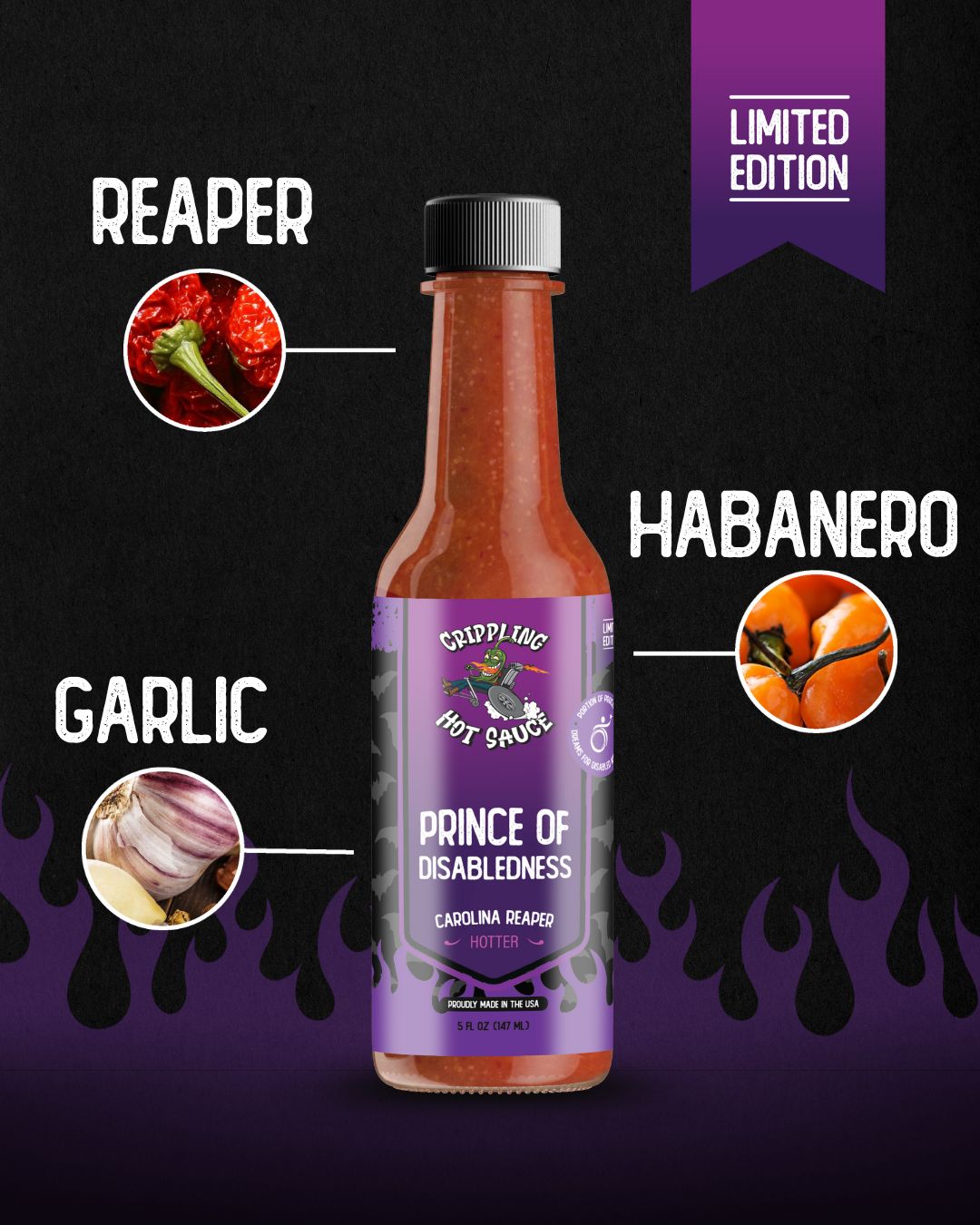 Carolina Reaper peppers bring a full-body burn with smoky depth and a slow, cocky grin that doesn’t quit. It’s bold, brutal, and just the right kind of wrong. It's the sauce that makes you question your decisions, then go back for more.